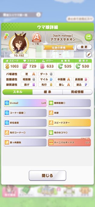 テイオー当たんない。 最近推してる娘。 いい感じなってきた。 伝説の歌姫って称号良くね。 わしのことかな。うん。