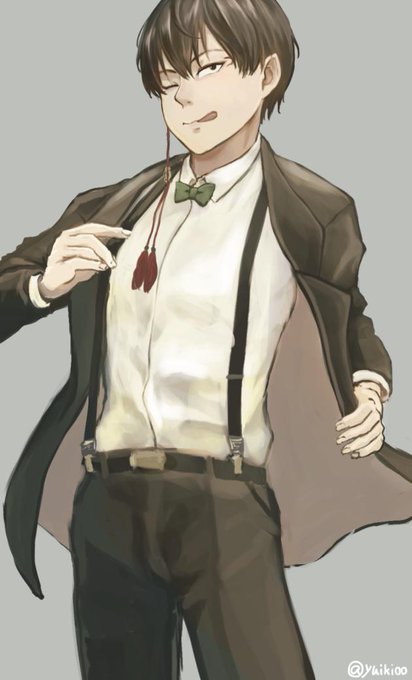 鬼灯様スーツ描けた~!差分でめがね