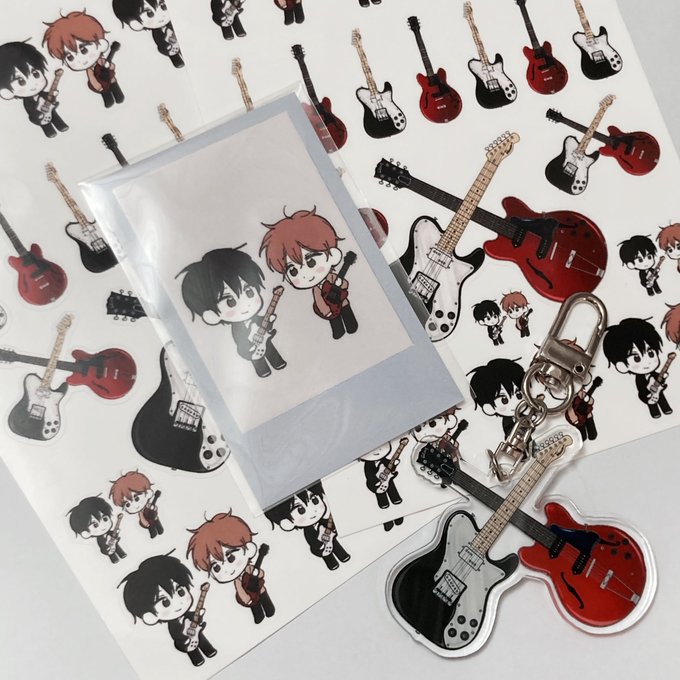 제가 그린 리츠마후 기타 도안에 시아가 커미션 맡겨서 뽑아준 스티커,,, かわいい~~~♡ 따로 말씀해주시면 키링 말고 다른 굿즈로 뽑으셔도 돼요! 스티커 너무 예뻐요 (´▽`ʃƪ)♡