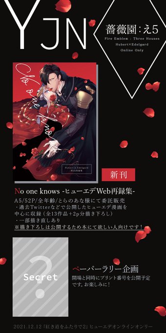 12/12(日)開催のヒューエデオンラインオンリー「紅き道を二人で2」のおしながきです 新刊の再録本とペーパーラリー参加になります ※ツリーに新刊の詳細記載します #ヒューエデオンライン