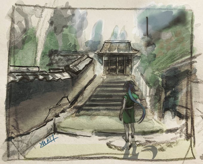 一次創作/Cp1西サイドの覚え書きメモ。 カジさんの暮らしてたお寺付近のイメージスケッチ
