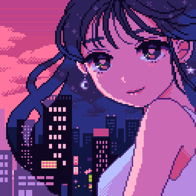 🌆→🌃 #ドット絵 #pixelart