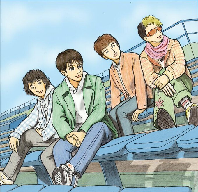 昔描いたスピッツの4人 手描きだし色鉛筆だし笑