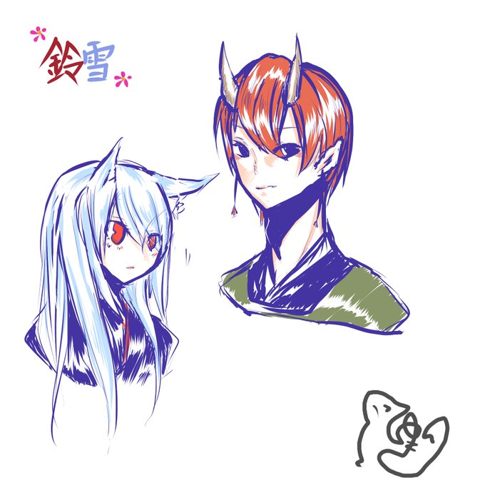 @kotomatiTL 鈴前さま(@uniuni____)と雪月のちょっとした落書き。たぶんまだ知り合って間もないからお互い表情はそんな親しくない…かな?