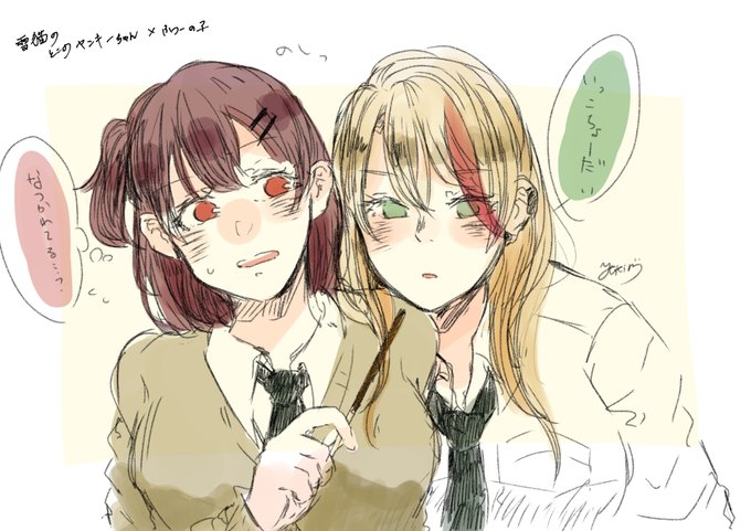 雪猫( @hrt07121030 )のとこの創作(?)百合っぷるちゃん。とてもかわ良い〜本家の子達もっと可愛いのでみんな見て。ちな落書きだし似てないです😉