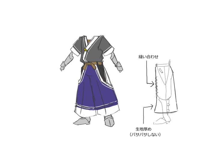主人公装備、思いついたら描いてみるスタンス 旅しながらなので、これくらいなら一人で着れるはず