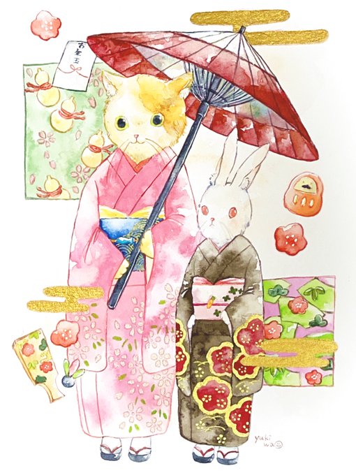#新年早々の創作クラスタフォロー祭り 水彩で女の子や動物の絵を描きます🖌
