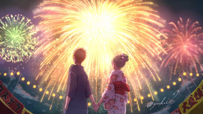 まきのせな様と広弥語り様の打ち上げ花火の歌ってみた動画用に描いたイラストのタイムラプスです。