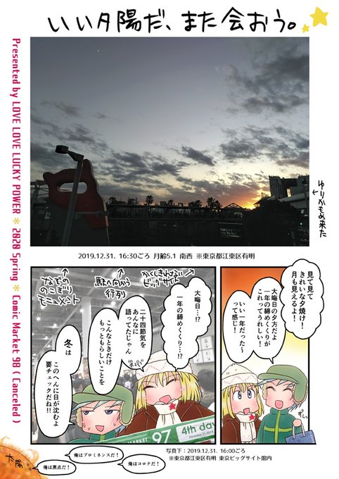 コミックマーケット98は開催中止となりました。制作中の天体観測本はそのうちか次回かに発行予定です。(画像1、2)