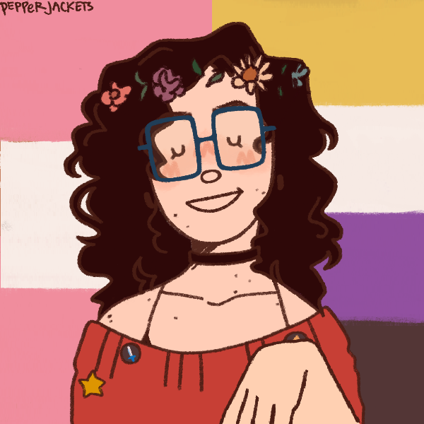 Just wanted to see if I could make my own adaptation of the Aromantic flag to fit in her little character! Definitely was a whole lot of fun!