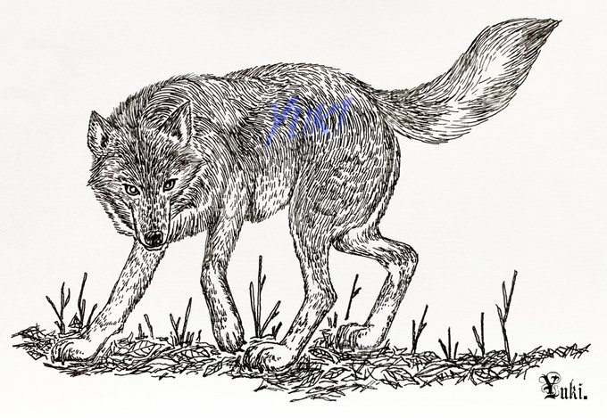 2003年頃描いた過去のペン画を、白い息を吐きながら方向転換する姿へとリメイク。森林狼の新しいアクリル画が完成しました。この狼『ターニングⅡ』が今年2021年を締めくくります。(真神