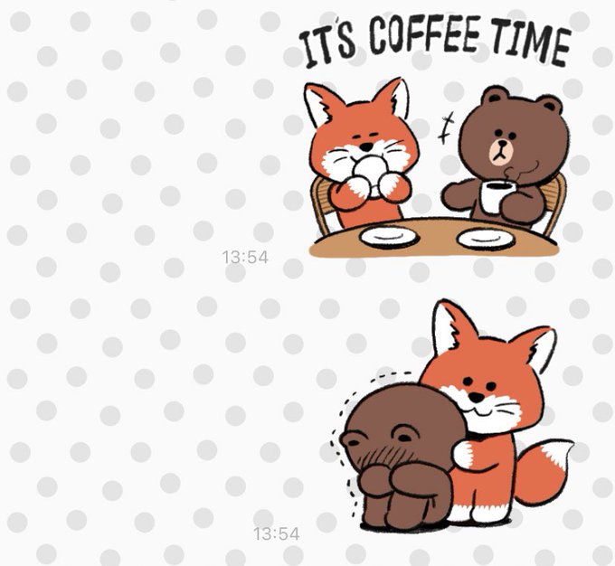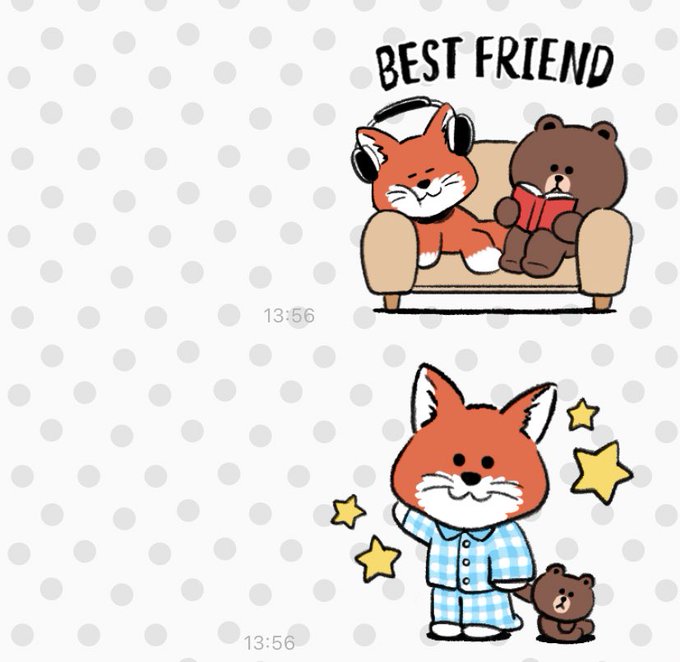 例の🐻🦊スタンプっぽい対照的なオフタイムを過ごす2人
