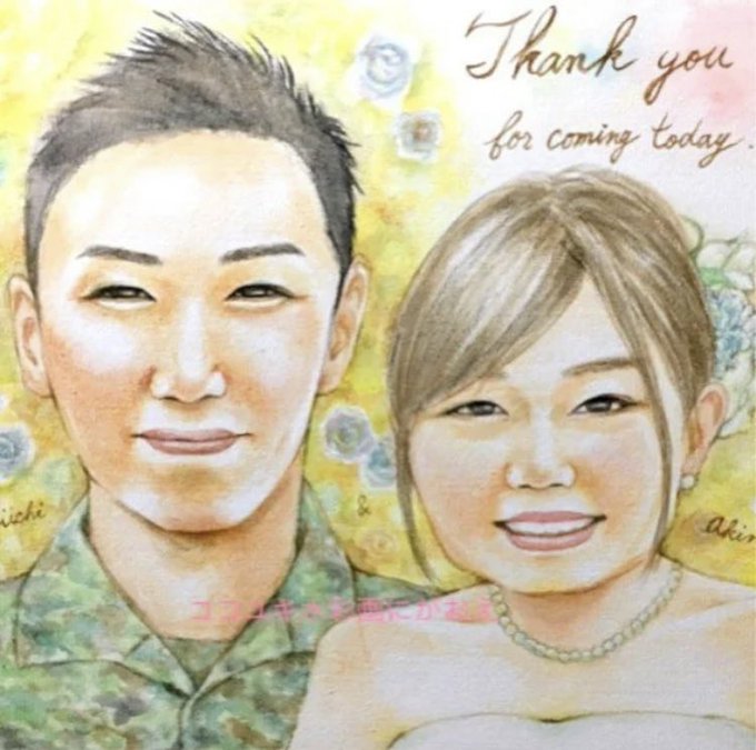 ウェディング似顔絵の文字入れ