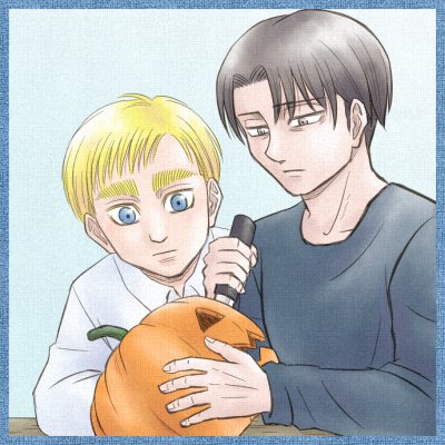 差し入れシール用に、ハロウィンなショタヴィンとリヴァイ。この年齢操作何度でもやりたい…☺️