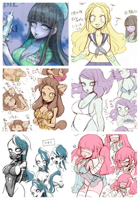 地獄の風俗嬢、これで当初考えてた6人のデザインができた。この子らでルポ風漫画描きたいと思ってたんだけど乳首の色に悩む肌色ばっかりで、さて