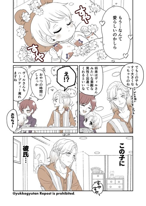 ヴィ監♀ シェーンハイト家の娘ちゃん誕生から生まれたあとのを手直ししてみました。 少し成長した娘ちゃんのシェーンハイト家も早く描きたい #twstプラス #twst_NL