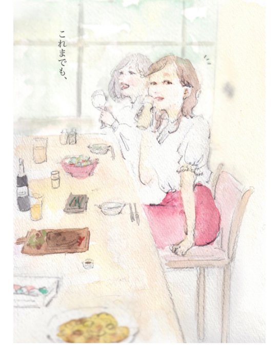 個展会場では、俵万智さんの短歌「親指が縦になるまで背伸びして子はテーブルの上を見ており」をキャプションに書かせていただきました。