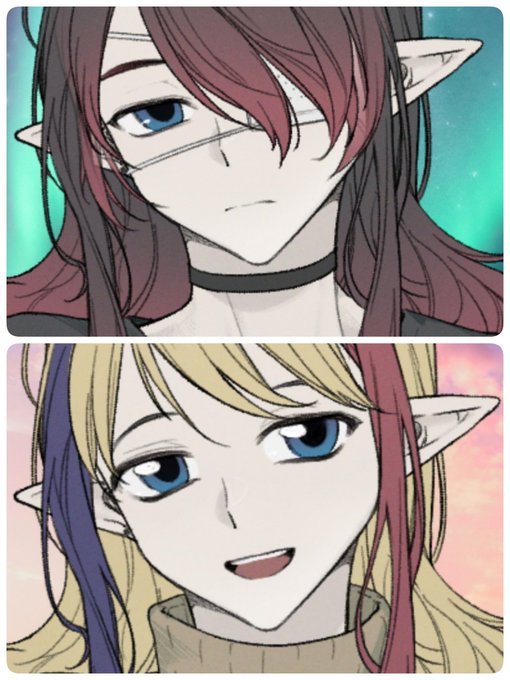 瞳の色(ピンクではなく赤、水色じゃなくて青)