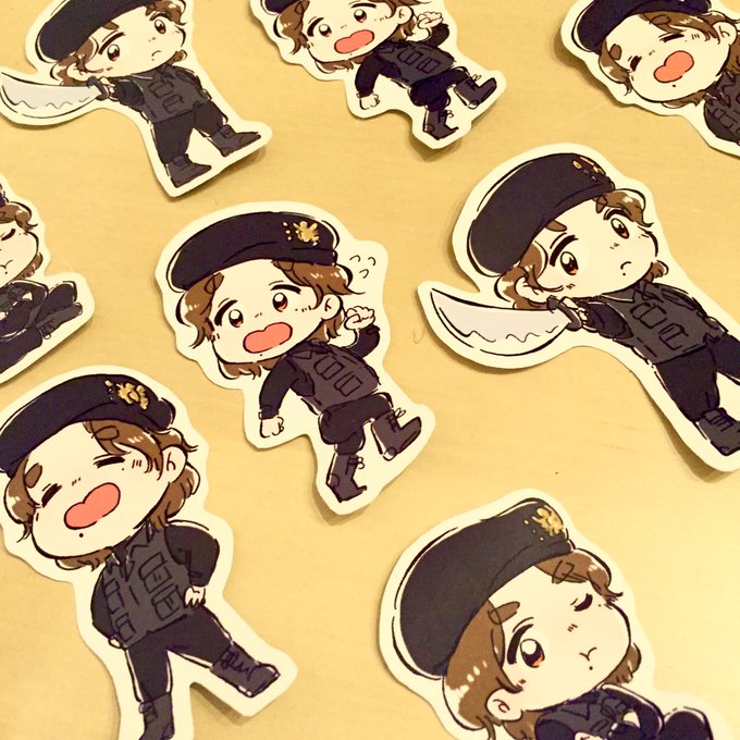 マルベス明後日に迫ってるからお土産ステッカー量産中✂️こんなにこやかに見れる劇ではないとは思いつつ……