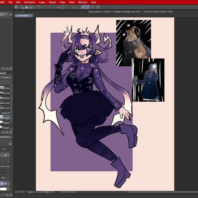 wore some cute clothes the other day so i had to draw myself in it uwu, featuring the cat of my cousin