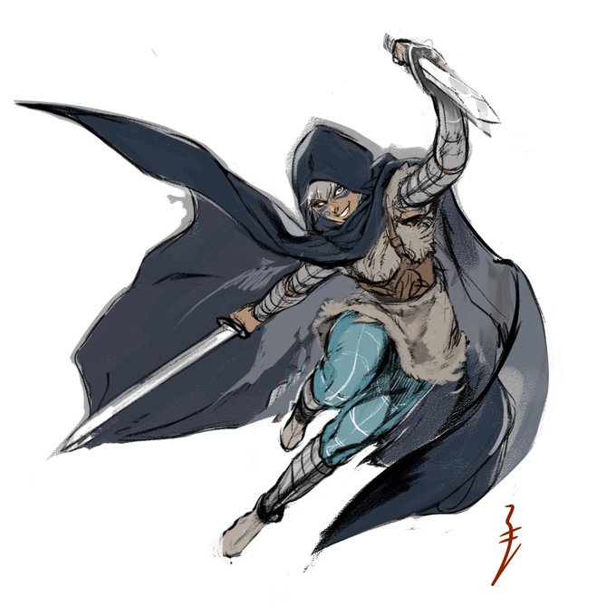 先日の #中秋の名月 にちなんで、月夜に舞う戦士の絵です