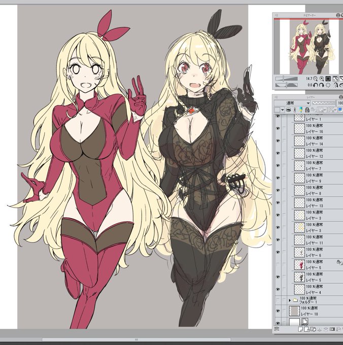 手のままに即興で描いてるけどそこそこ良いデザインな気がしてきた。髪の色は迷うけど。
