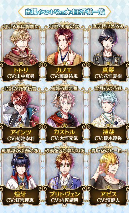 1/12(土)12:00よりイベントVer.カルト王子&スぺルヴィア王子&フォーマ王子&ロイエ王子が登場!