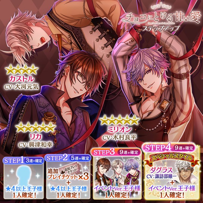 今回のガチャで出現する★5王子様は、全てルルス王子に!どうぞお楽しみに☆ #夢100
