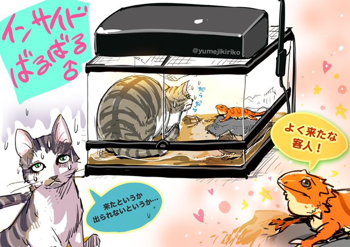 みかん氏(フトアゴ)のケージ掃除中、振り向いたらバルバル氏(猫)がインサイドしてたwwww 出方わかんないなら入るなよwwwww