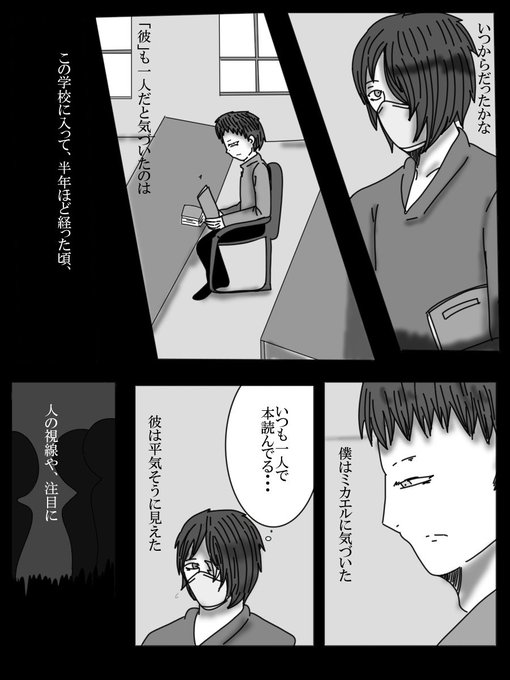 昔描いてた友情以上恋人未満なミトくんとミカエルをリメイクして描きたい気持ち ミカエルはミトくんに依存気味 おどおどしてるけど実はメンタル的には粘り強いミトくんの話です