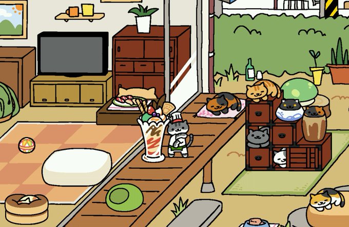 #ねこあつめ カフェさんいる😻とんぼさん🌸ー俳句風ー心が和みますね😌🌴💕まんぞくさんもw