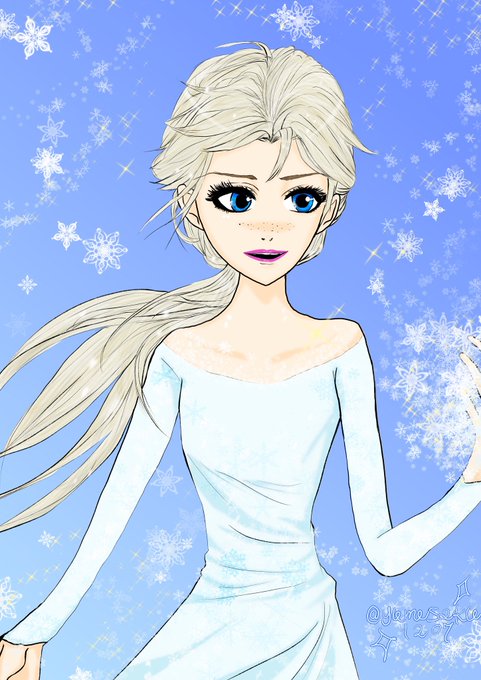 お母さんが美容院で髪切ってもらってる間に美容院のソファでゆったりエルサ描いてた(笑) 落書きだけだったんだけど、せっかくなので色塗ったやつ