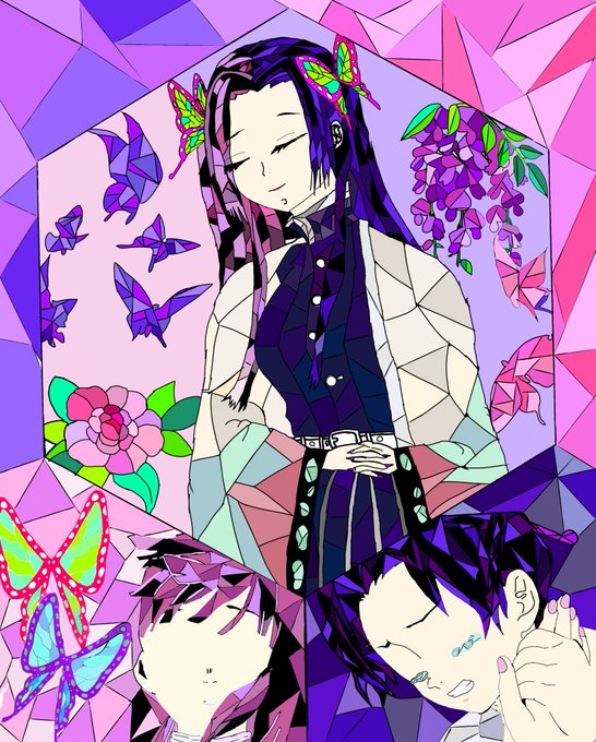 ibisPaint Xで胡蝶姉妹描きました!!!!!!!!! ステンドグラス風です!!!!!!!!! #鬼滅の刃 #ステンドグラス #胡蝶カナエ #胡蝶しのぶ #栗花落カナヲ
