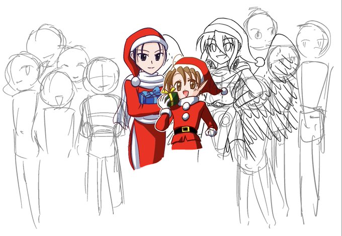 おはようございますー。 お友達がやってたのが素敵だったので、朝からフリートさん用のリルの線画を描いてました。 クリスマス落書き、毎日描いたらエバキャラ全員描けるんじゃないかな?と等身を合わせてみたりしていましたが、これサンタ服じゃなくて通常服で書けばキャラ紹介になったのでは……(汗