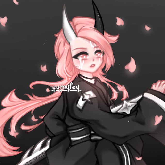 #digitalart #digital #digitalartist #artistontwitter #pinkhair #OC #Horns #black #procreate #selftaught