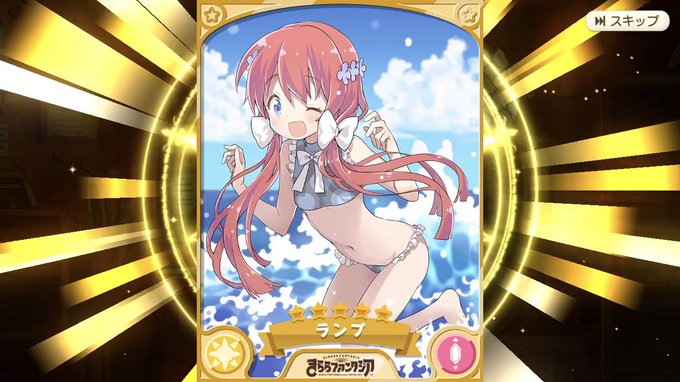 きららファンタジア 水着ガチャ 健全な水着のランプさん きましたわ! 今回のガチャはピックアップ3人混在だからお目当てを狙うの厳しすぎるよ ごちうさ勢は死ぬ気がする 渋い