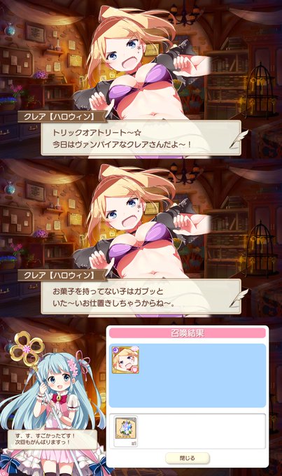 きららファンタジアのガチャ星5演出で「これで勝ったとおもうなよ〜 です」というクレアの声が聞こえて驚いた!もしかしてガチャ結果に応じた専用ボイスがある? たくさんガチャ回してやっと吉田優子さん出ました まちカドまぞく シャミ子
