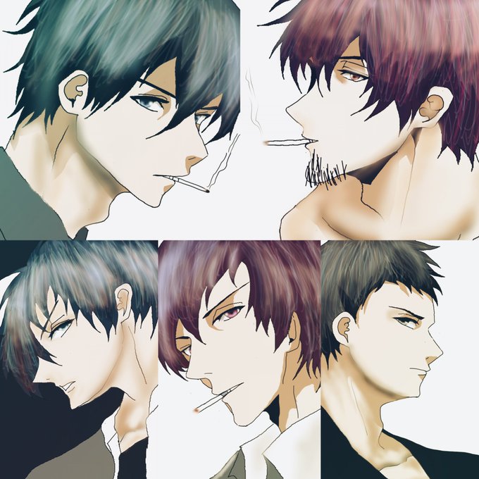 #うちの子描いてみませんかキャンペーン #うちの子勝手に考察していいのよそしてそれを聞かせてください 自創作のBL小説のキャラです 少年組と青年組と中年組ですね #イラスト