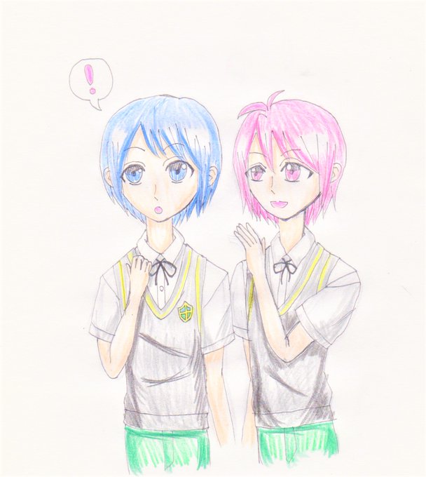 お題:耳打ち 遅刻すいません…(>_<) 中学生葵陽君と吉宗君で描かせていただきました('ω') #バンやろ版深夜のお絵描き一本勝負