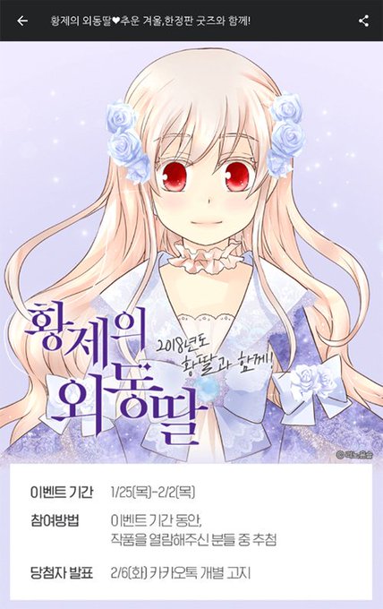 1/25~2/2 일! 만화 <황제의 외동딸> 한정판 굿즈 이벤트! 담요 넘 귀엽네요 저도 어서 갖고 싶어요 ;ㅅ;