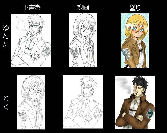 りくさんとの交換企画のまとめ。線画と塗りが違うとこんなにも印象が変わるんだなあ…!改めて勉強になりました^^りくさん、本当にありがとうございました♪ またつき合ってやってくださいな♡