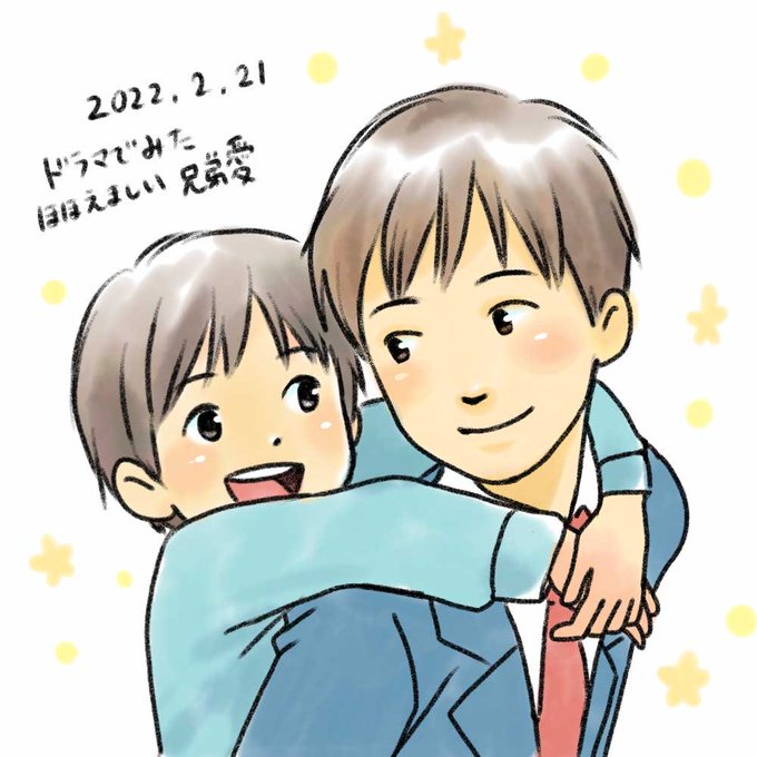 ドラマで見た兄弟がとても微笑ましくて、思わず仲良し兄弟を描きたくなりました😁