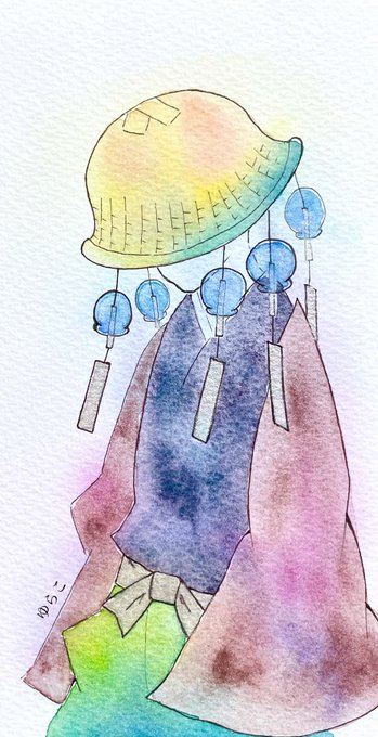 顔が笠で見えないこの🎐さんが好きで描きました☺️