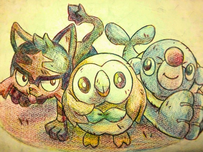 たまには色鉛筆でポケモーン #ポケモン #御三家