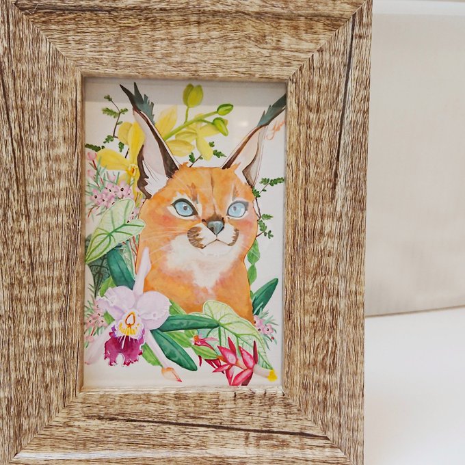 昨日のカラカルです٩( 'ω' )و カラカルはエジプトで 守り神らしいですね✨✨ 教えてもらいました(っ´ω`c)💕 #ねこ科 #アクリル画 #動物好き