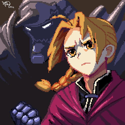 Minha primeira pixelart, gostei Personagens: Edward Elric e Alphonse Elric ( Fullmetal Alchemist ) App usado: Ibispaint X