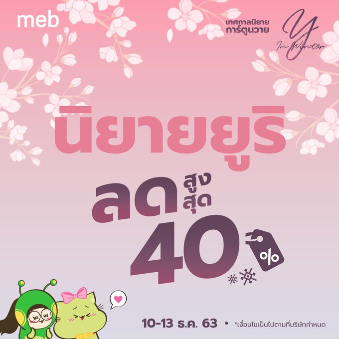 สำหรับคอ  #การ์ตูนยูริ/ #นิยายยูริ  ใน MEB จัดเทศกาล “Y in Winter” หนังสือยูริต่างๆ ลดราคาสูงสุดถึง 40% เลยค่า!