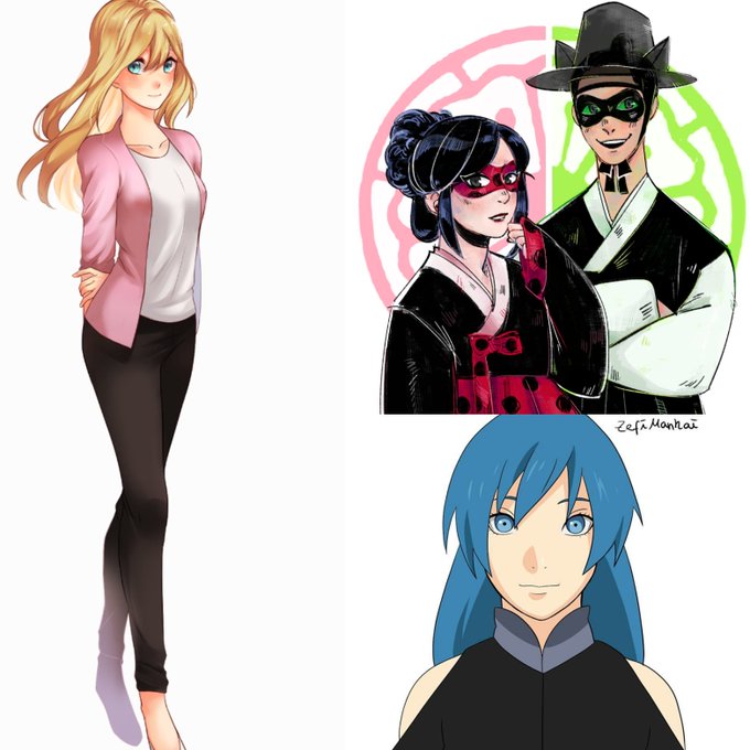 A beautiful drawing of my Korean Ladynoir that I commission from @Reeunknown #MiraculousLadybug