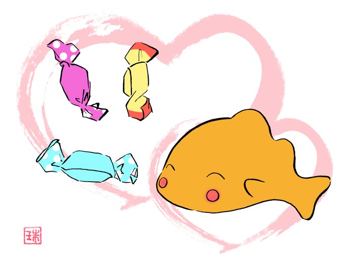 かなさかな『キャンディーとあおいちゃん』 #オリジナル #かなさかな #オリジナルキャラクター #金魚 #和風 #バレンタイン https://t.co/GY9iZXWC9W