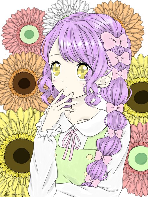 素敵な線画を塗らせていただきました!髪がいい感じに塗れた気がする。背景のお花はアイビスの素材をお借りして塗りました。 #Riraの線画